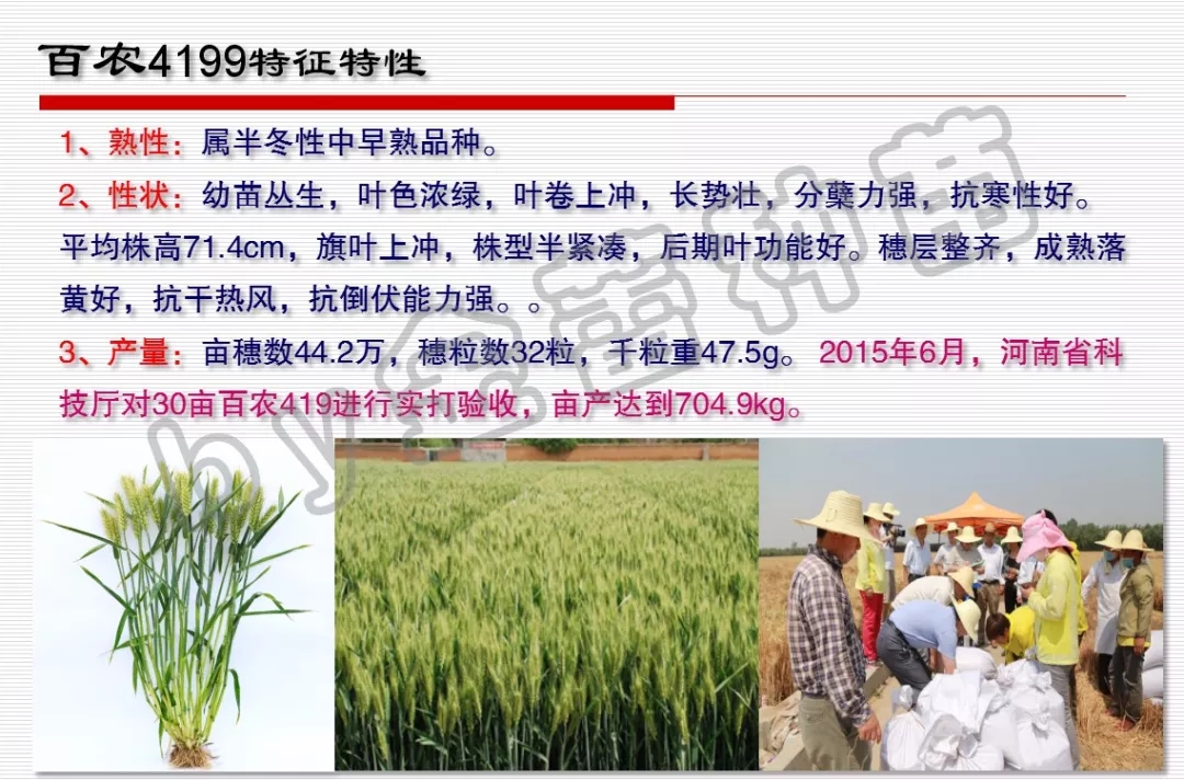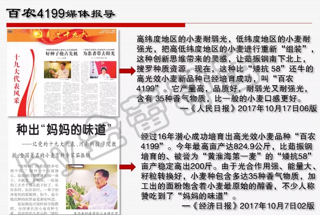 隨后,茹振鋼教授帶領團隊用高光效親本通過與百農AK58雜交,先后研究解決麥穗、麥稈、根系等難題,克服了掉穗、營養供給不足等問題,成功培育出高光效小麥品種金蕾百農4199。