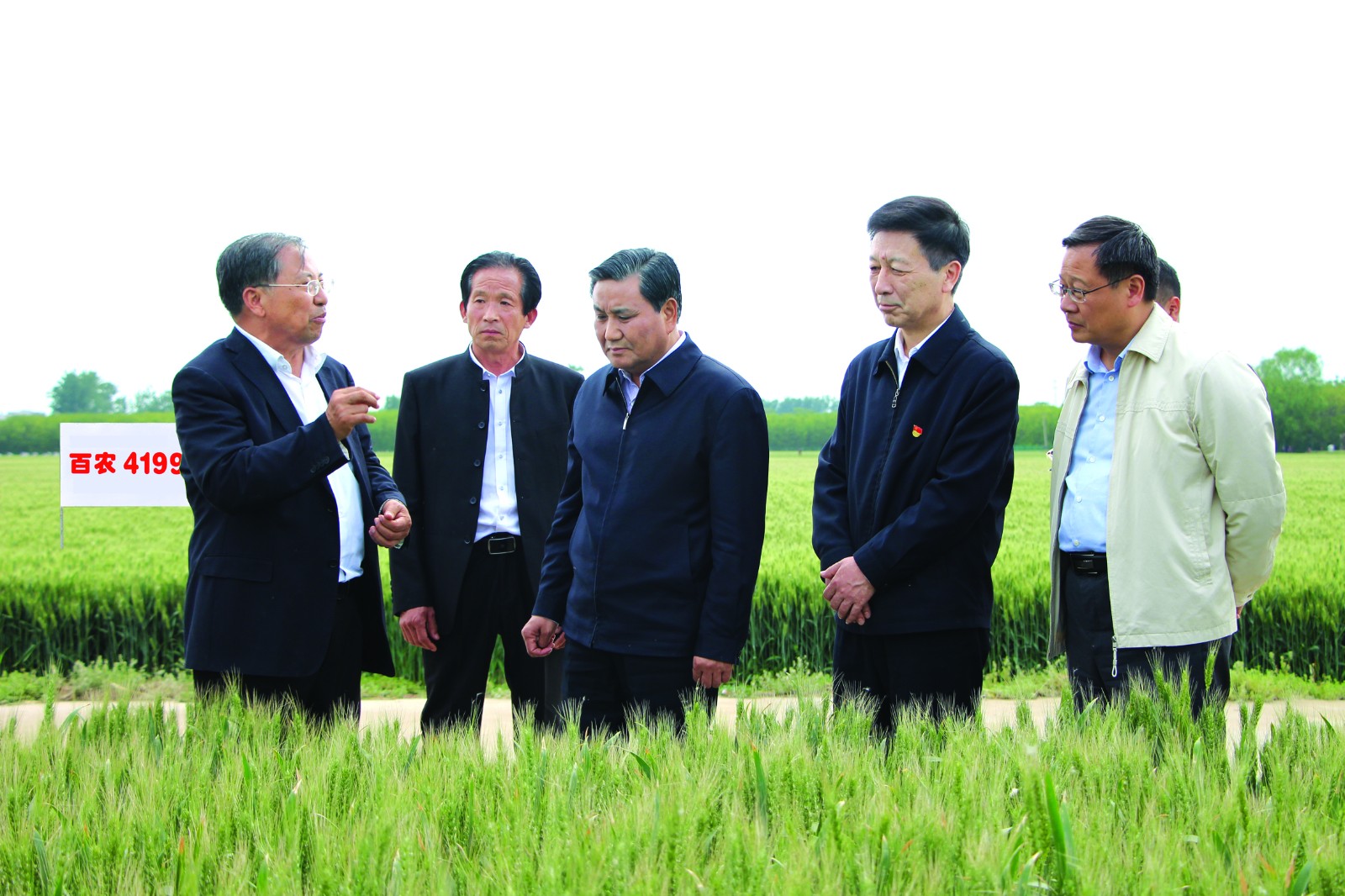 5月8日,在公司總經理李德嶺和小麥育種專家茹振鋼的陪同下,副省長武國定到我公司與河南科技學院共同打造的小麥科研基地視察工作。